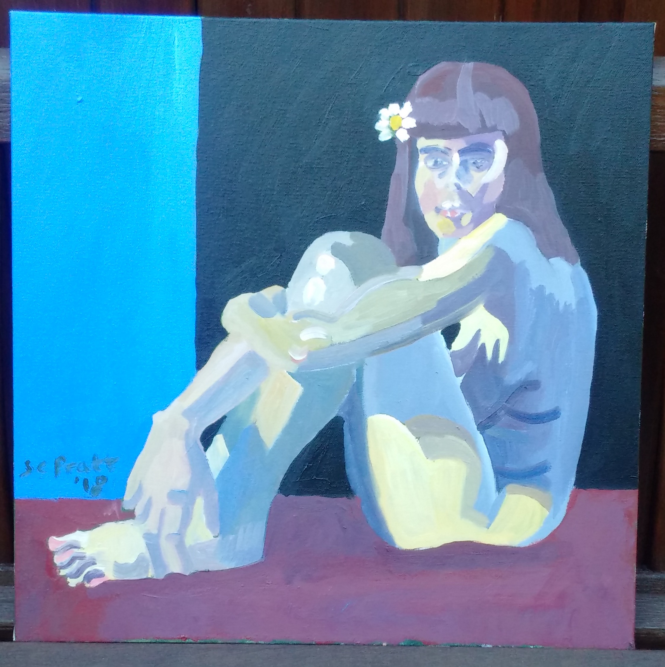 Girl with a flower in her hair (20 x 20 inches) 2018, £350